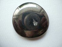 Tromlovaná placka - gagát. Rozměry 41 x 39 x 10 mm. Kupujete vyfocený kousek. Leštěné. Vhodné pro cínování, obšívání.. Tyto kameny jsou lehoučké. Říká se mu černý jantar, je to zkamenělé dřevo. Původ Čína.