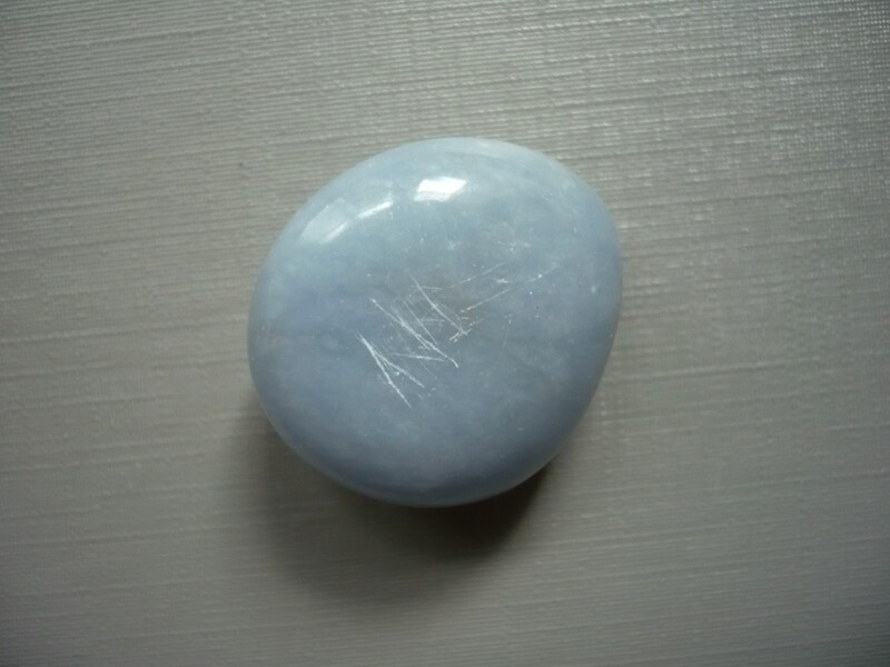 Tromlovaný kámen - angelit. Rozměry 28 x 25 x 17 mm. Kupujete vyfocený kousek. Leštěné. Vhodné pro cínování, wire-wrapping.. V nabídce také korálky a placky angelitu.