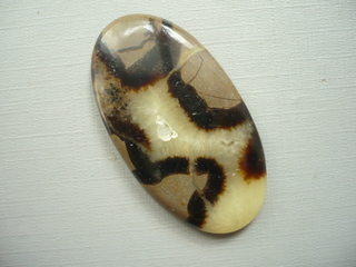 Velký kabošon septárie. Rozměry 47 x 26 x 6 mm. Vhodné pro cínování, obšívání... Septárie je známá jako Dračí kámen, původ Madagaskar. Kupujete tento konkrétní kus. Jde o přírodní kámen, není dobarvován.