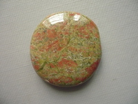 Tromlovaná placka - unakit. Rozměry 45 x 43 x 11 mm. Původ JAR. Kupujete vyfocený kousek. Leštěné. Vhodné pro cínování, obšívání.. V nabídce ještě vrtané kameny, korálky, zlomky..