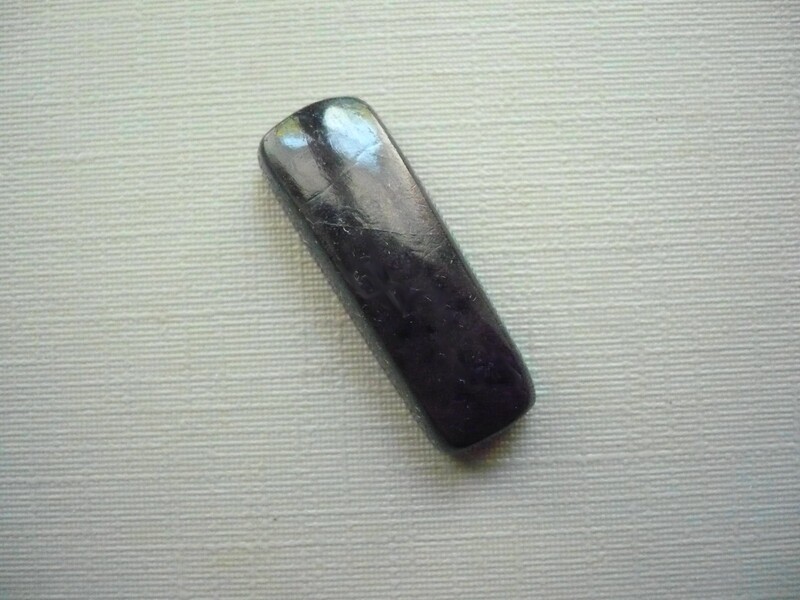 Kabošon - purpurit. Rozměry 24 x 8 x 5 mm. Původ Rwanda. Vhodné pro cínování, obšívání... Ze spodní strany je plochý.