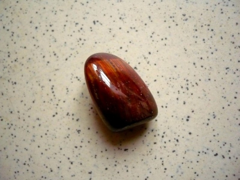Tromlovaný kámen - býčí oko. Rozměry 19 x 11 x 11 mm. Původ JAR.