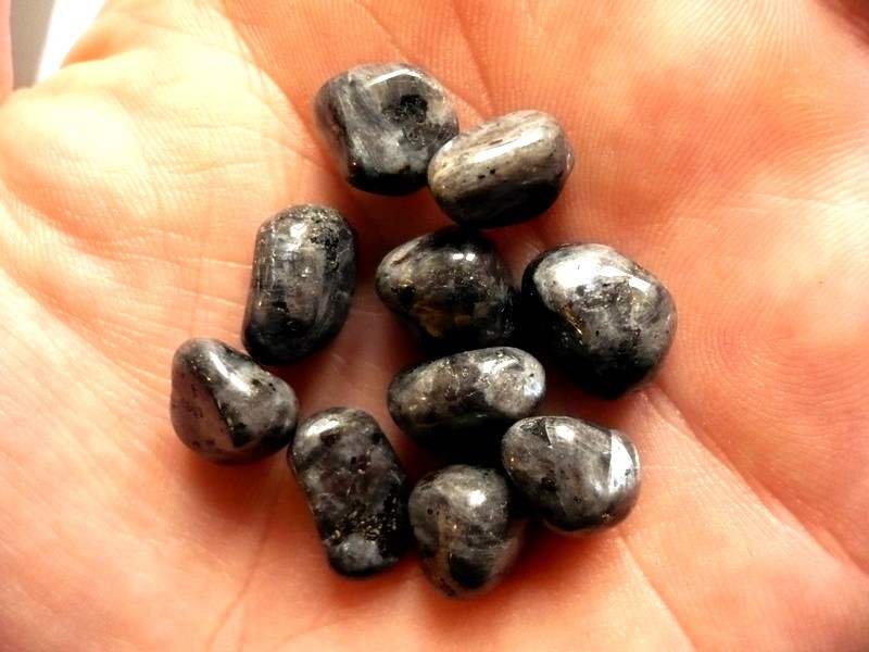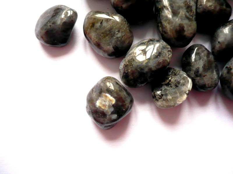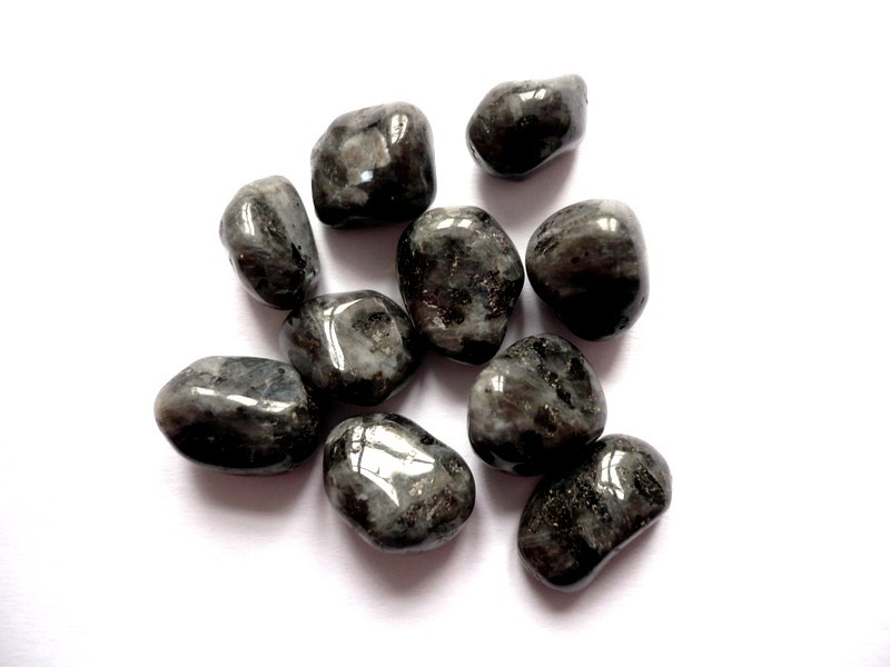Tromlované kamen - larvikit. Rozměry 15 - 10 mm. Původ Čína. Cena za 10 kusů.