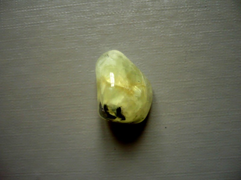 Tromlovaný kámen - prehnit s epidotem. Rozměry 17 x 14 x 11 mm. Původ Čína.