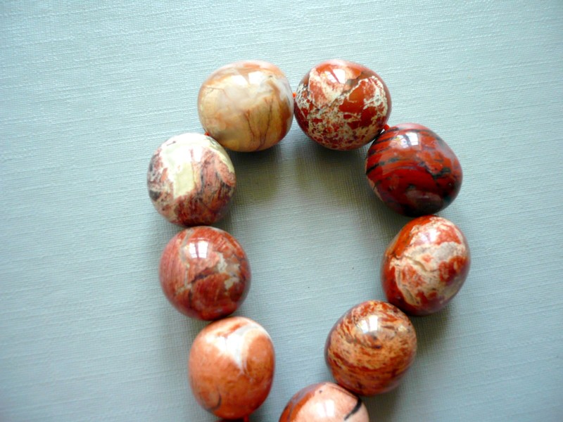 Tromlované valounky jaspisu brekcie, cena za 2 ks. Rozměry cca 14 x 13 x 12 mm.