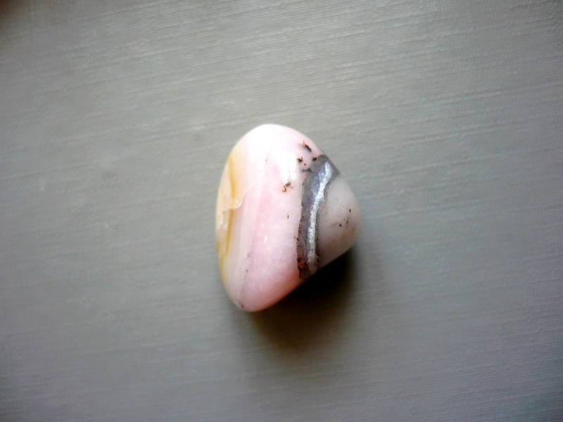 Tromlovaný kámen - růžový andský opál. Rozměry 20 x 17 x 14 mm. Původ Peru. Obsahují černé dendrity. Andský opál - čistíme ve vlažné vodě a nabíjíme na denním světle. V nabídce také zlomky a kabošony andského růžového opálu, bílý a žlutý opál..