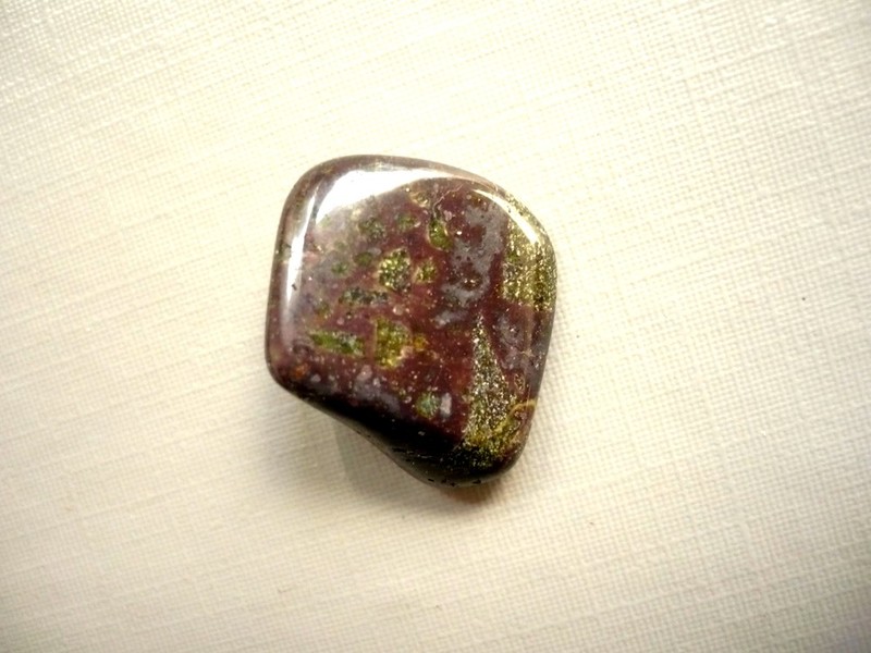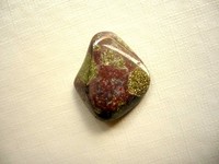 Tromlovaný kámen - epidot s červeným jaspisem. Rozměry 20 x 17 x 8 mm. Také se mu říká Dračí krev.