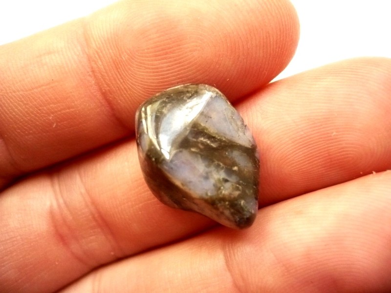 Tromlovaný kámen - liberit modrý. Rozměry 19 x 15 x 9 mm. Původ Brazílie. Je poměrně vzácný.